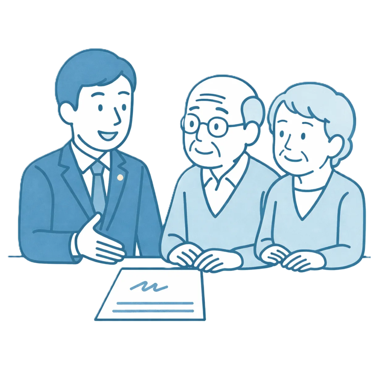 死後事務委任契約の場合、長期にわたる契約となるため、個人の行政書士に依頼した場合、その方が先に亡くなってしまうリスクがあります。法人であれば継続性が担保され、安心してお任せいただけます。