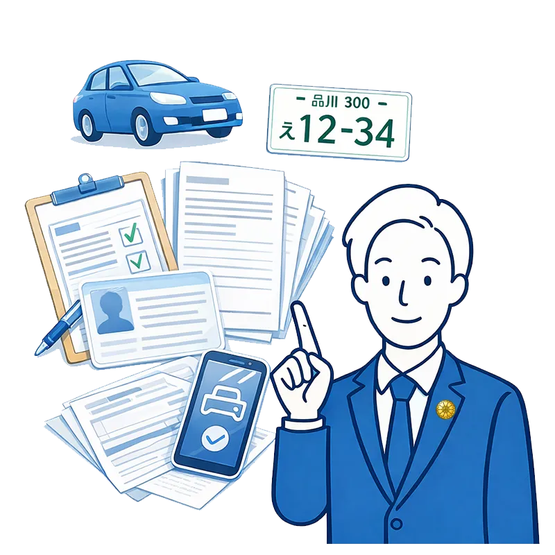 車両手続きとは、自動車の購入・売却・引越しなどに伴い必要となる各種届出・登録手続きのことです。車庫証明、名義変更、住所変更、ナンバープレートの変更など、様々な手続きがあります。